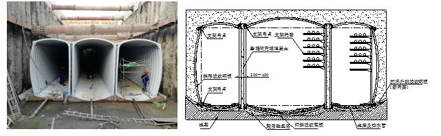 波紋鋼埋置式結(jié)構(gòu)涵洞、通道在國外已有百余年的悠久歷史和成功應(yīng)用案例,國內(nèi)外的工程實踐證明,波紋鋼埋置式結(jié)構(gòu)由于具有良好的變形適應(yīng)能力,特別適用于常年凍土、膨脹土、軟土以及濕陷性黃土等不良地質(zhì)條件和高填方路段及地震地區(qū)的涵洞和通道,以及長距離排水排洪管道。波紋鋼管埋置式結(jié)構(gòu)始于19世紀(jì)末,百余年來隨著波紋鋼埋置式結(jié)構(gòu)的不斷普及及應(yīng)用,其已成為一種比較成熟的結(jié)構(gòu)形式。