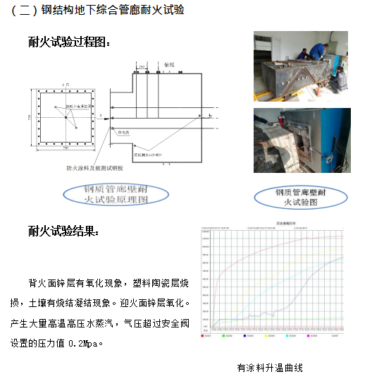 ④更為重要的是,耐火涂料只能阻止火災時鋼結(jié)構(gòu)的溫度不高于 550℃,但對于鋼結(jié)構(gòu)地下管廊來說情況特殊,在火災發(fā)生半小時左右,耐火涂料覆蓋的鋼結(jié)構(gòu)體溫度就超過 150℃,廊體外部土壤中的水份形成高溫高壓蒸汽,其產(chǎn)生的次生災害有可能嚴重于火災本身。
