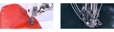 5.標(biāo)配10MM針位,氣動(dòng)中分外壓腳,平衡補(bǔ)償內(nèi)壓腳。